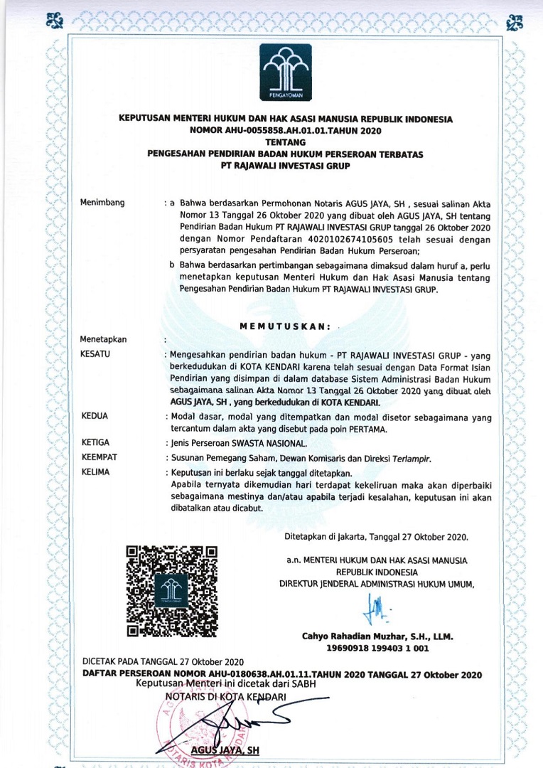 Pengesahan Kementrian Hukum dan Ham