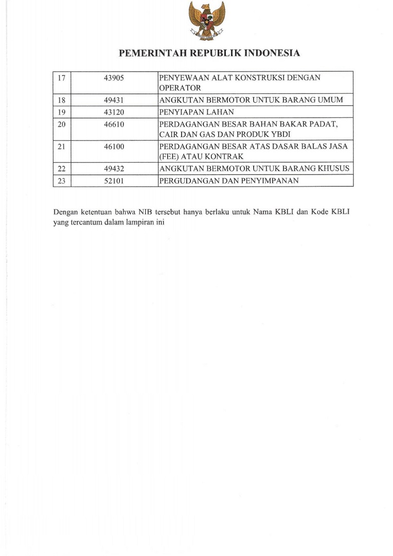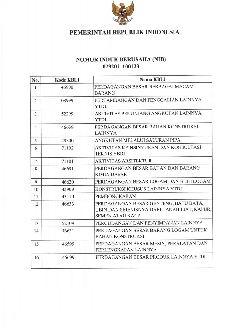 Nomor Ijin Berusaha